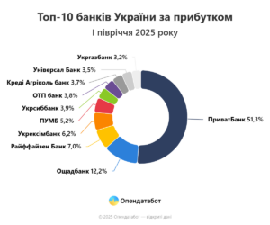 Иностранные банки, напротив, уменьшили прибыль почти на четверть — до 16,57 млрд грн. Лидером среди них остается Райффайзен с прибылью 4,74 млрд грн и ростом 10%, налог — 1,66 млрд грн. Банки с частным капиталом понесли падение на 25%, их прибыль составила 10,06 млрд грн. Наибольший показатель у ПУМБ — 3,57 млрд грн (минус 7% по сравнению с прошлым годом). Вместе с Универсал Банком (Монобанк) они получили 59% прибыли группы.