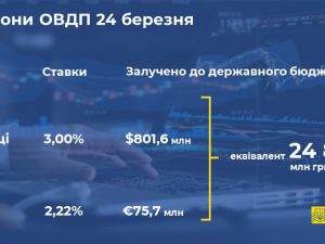Міністерство фінансів на аукціоні 24 березня знову не став розміщувати гривневі облігації внутрішньої держпозики. Замість цього на торгах пропонувалися папери в доларах і євро.